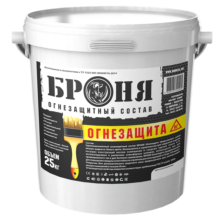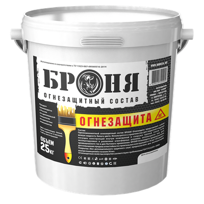 Огнезащитный состав для металлических конструкций Броня Огнезащита предназначен для повышения предела огнестойкости металлических конструкций в строительстве, и обеспечивает огнестойкость несущих металлоконструкций R45, R60, R90 и R120 (45, 60, 90 и 120 минут соответственно) по ГОСТ Р 53295-2009. Предназначен для нанесения при положительных температурах от +10 С.